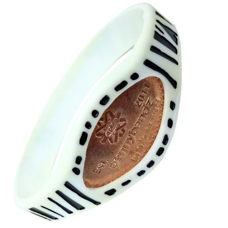 - Simply insert your pressed penny into the pliable, 100% surgical-grade silicone (not latex) wristband